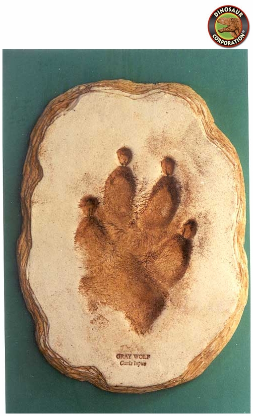 Gray Wolf FootprintThe mission of Dinosaur Corporation is to support education and heighten the awareness of dinosaurs and other prehistoric animals. Dinosaur Corporation is a Federally Registered Trademark. All prehistoric world images and paintings are owned and copyrighted by Dinosaur Corporation. All rights reserved.