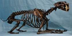 Saber Tooth Cat Skeleton. Fossil Replica. Carnivore of the La Brea Tar Pits/California. Saber Tooth Cat Skeleton is licensed from the Natural History Museum of Los Angeles County Foundation, Page Museum specimen.