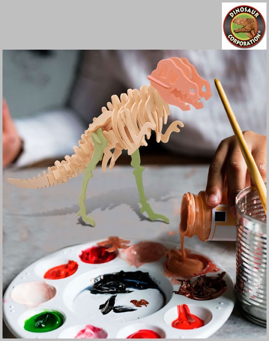 3D T-rex Wood Bones Skeleton Kits. No glue or tools required. Tyrannosaurus 3D wooden puzzle is a challenging and creative toy made of high grade 3mm natural wood and comes in a shrink-wrapped package with instructions and sandpaper included. This fine dinosaur is part of our prehistoric collection, just match the numbers together 1 with 1, 2 with 2 and so on. After assembly you can paint, play, display or disassemble and enjoy the challenge of building again. Our 3D dinosaur puzzles collection is a great educational tool and pass time for you and your family. Suitable for all ages simply pop out the pieces and go. Start your collection today. This carefully crafted product is brought to you by Dinosaur Corporation.